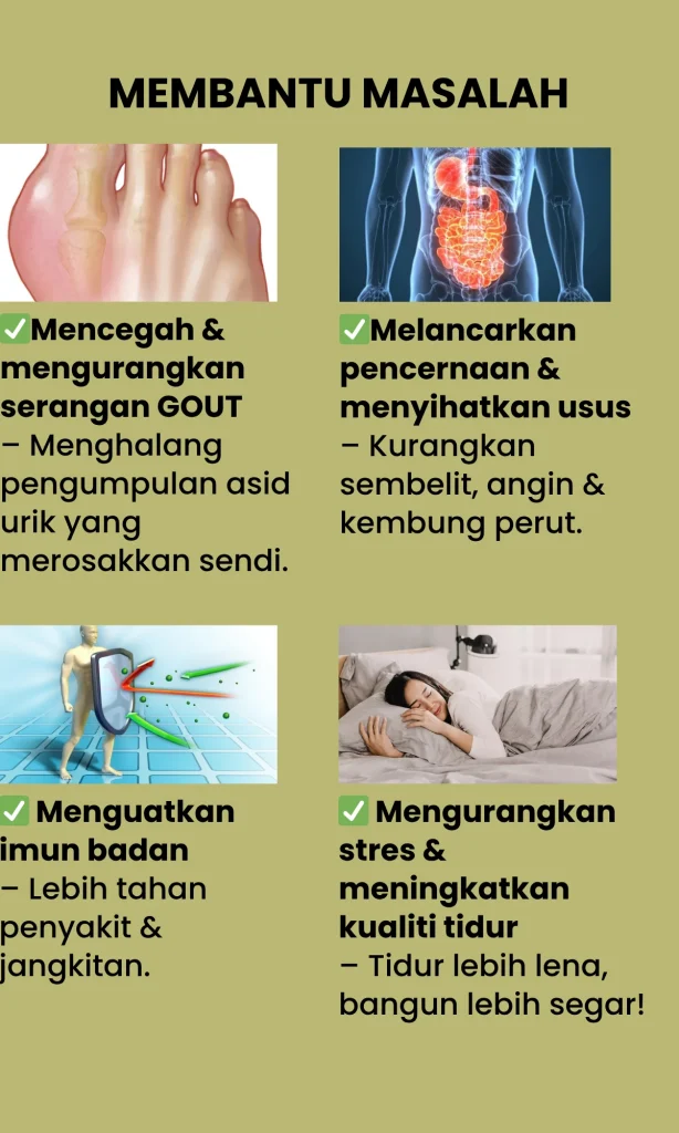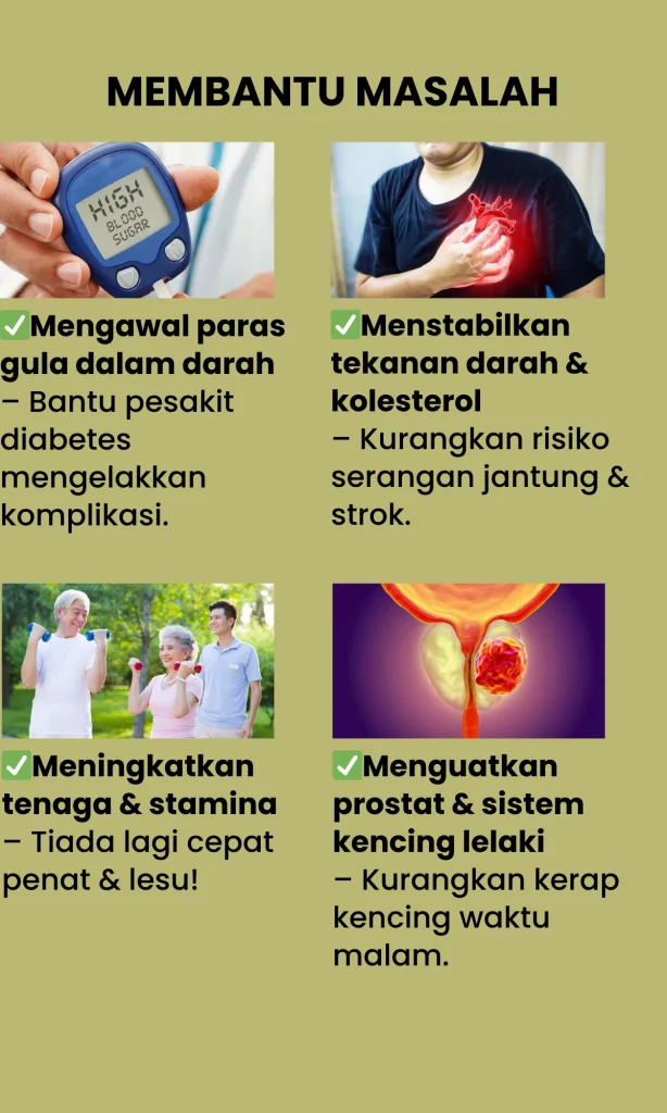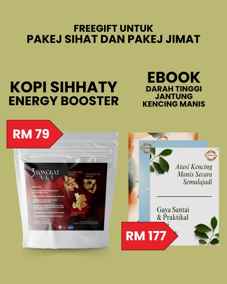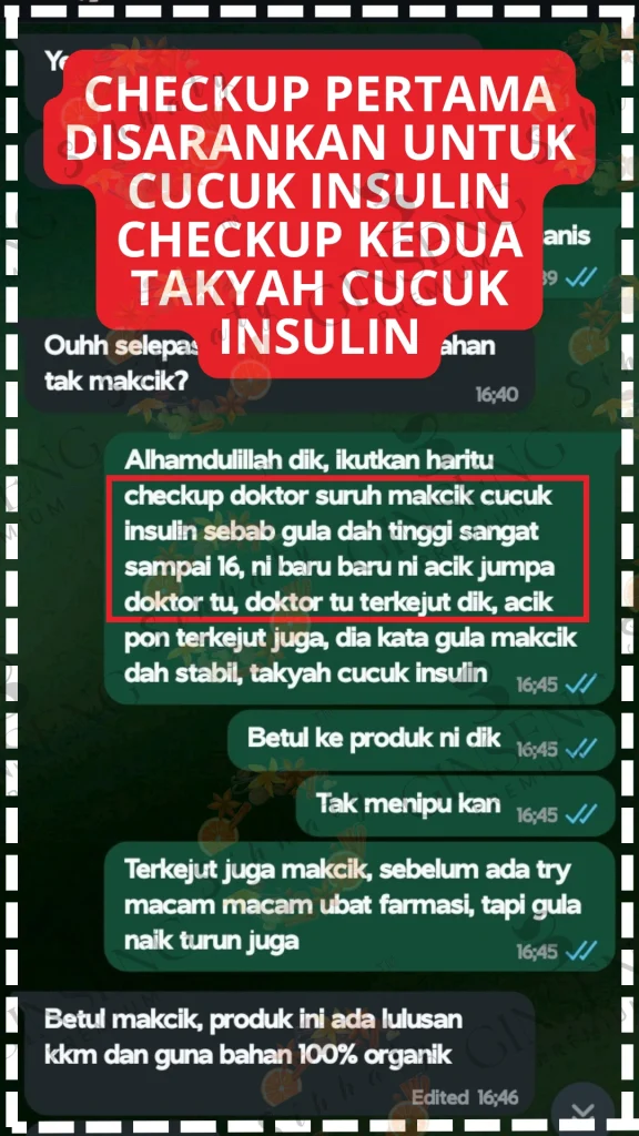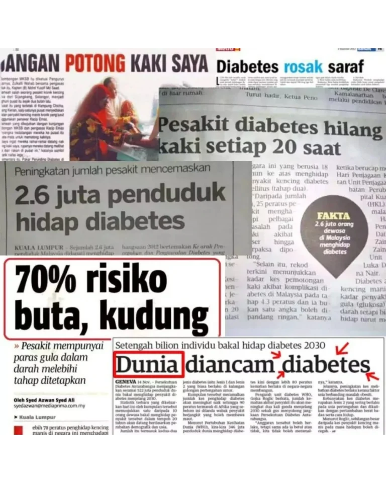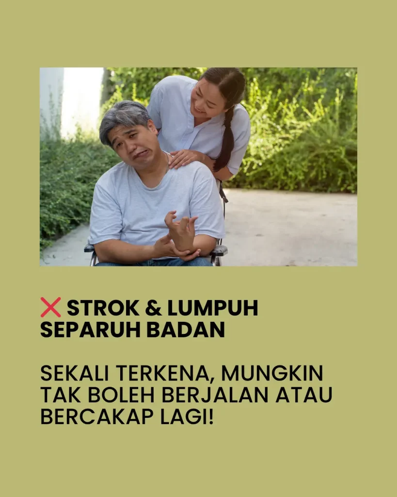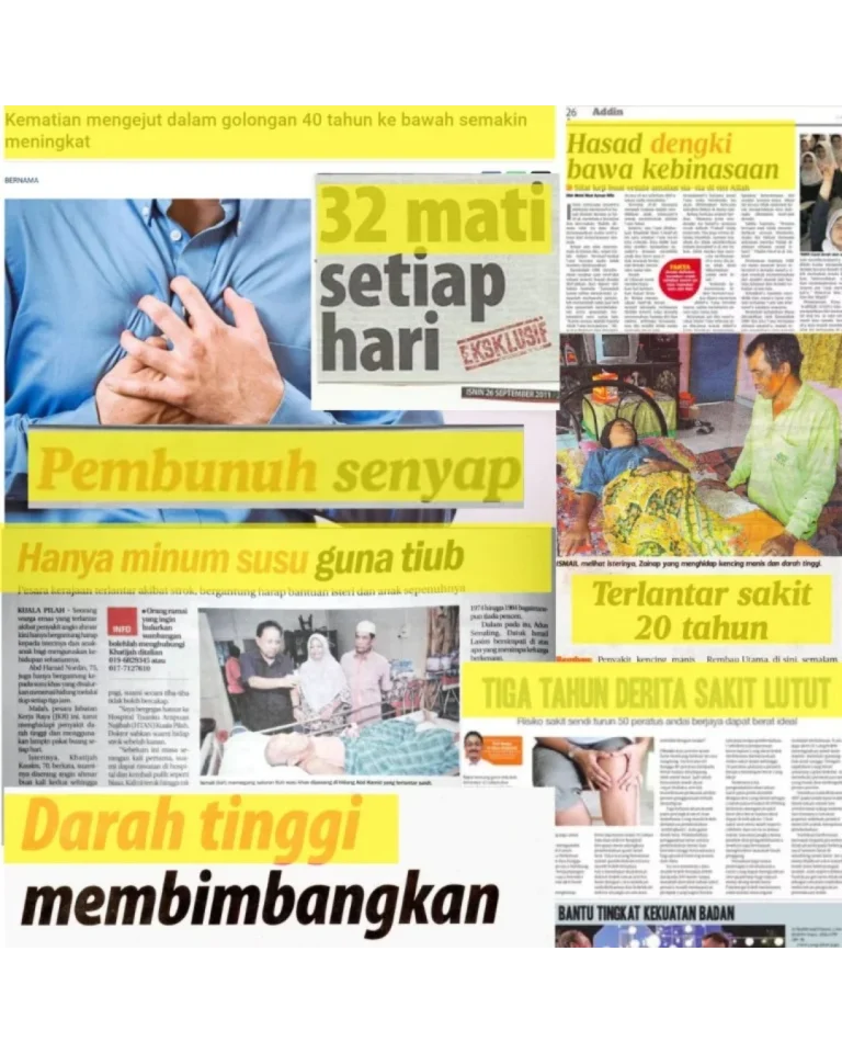 PERTAMA :Teruskan je hidup dengan bacaan gula, darah tinggi & jantung yang makin hari makin naik. Terus makan ubat kimia — badan makin lemah, risiko buah pinggang rosak. Kalau dah kena strok, dah terlantar — baru nak menyesal, dah terlambat!