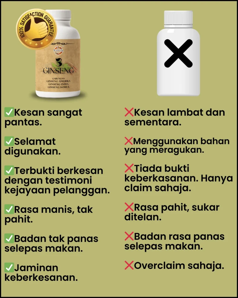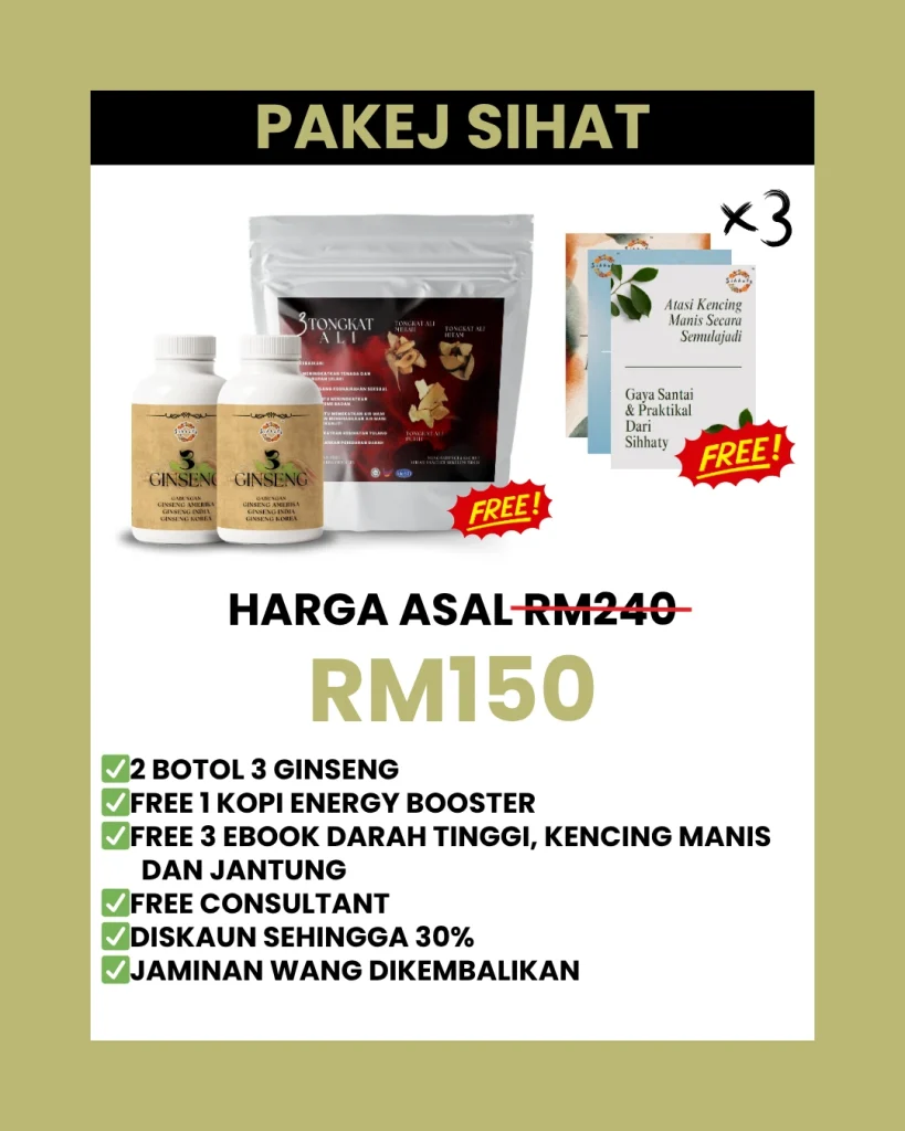 KETIGA :Bagi peluang kat diri sendiri cuba 3 GINSENG PREMIUM sekarang! Herba TERBAIK dunia — Korea, India & Amerika — bukan gred biasa. Amalkan 1 tablet sehari, ramai dah TERBUKTI bacaan turun mendadak. Gula makin stabil, tekanan darah turun, jantung makin kuat. Tak percaya? Ramai dah rasa kesan seawal 7 HARI!